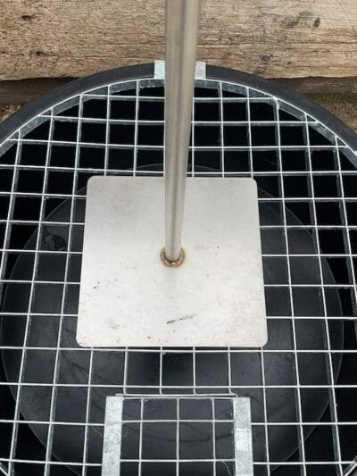 Place the largest piece of slate over the base plate pole and lower carefully to the ground. Adjust the piece until it sits comfortably. The sizes of these base pieces vary depending on the overall height of the structure. This doesn’t need to be attached or fixed to the stabilising plate. The weight will then stabilise the plate and keep it in place to accommodate further stones.