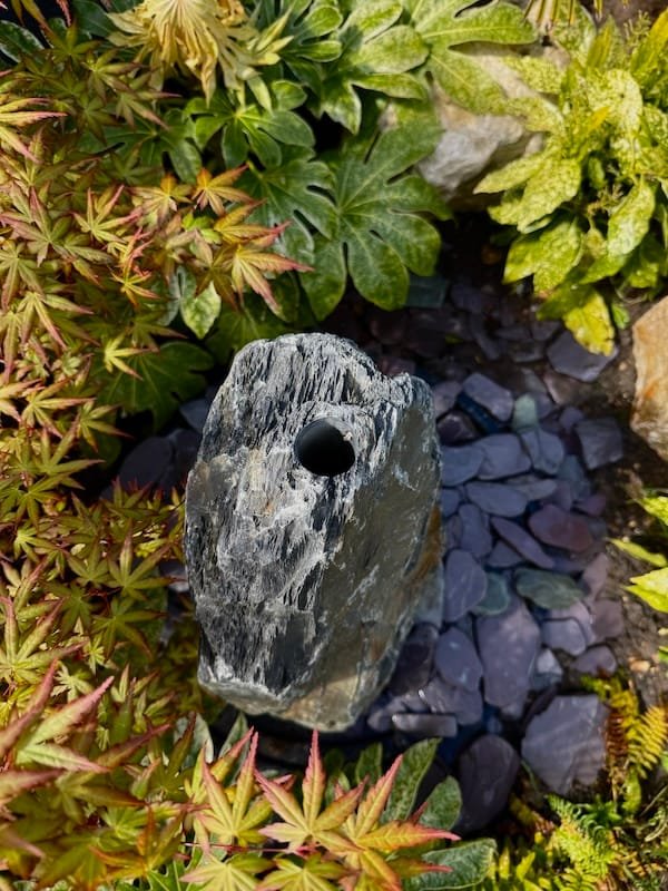 Slate Monolith Water Feature SM360 is a Medium premium quality free standing stone core drilled as a water feature. Alternative use in a rockery or Japanese themed garden design. It has some unique and stunning markings and full of slate grey tones. Add Large Reservoir Pack in basket. Free UK Delivery.