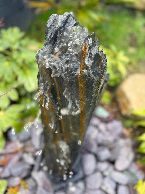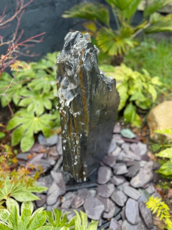 Slate Monolith Water Feature SM370 is a Medium premium quality free standing stone core drilled as a water feature. Alternative use in a rockery or Japanese themed garden design. It has some unique and stunning markings and full of slate grey tones. Add Large Reservoir Pack in basket. Free UK Delivery.