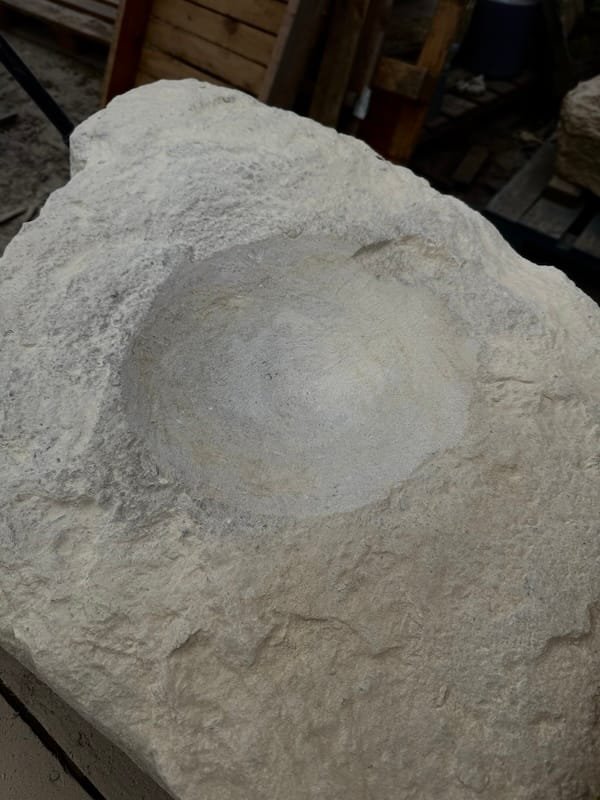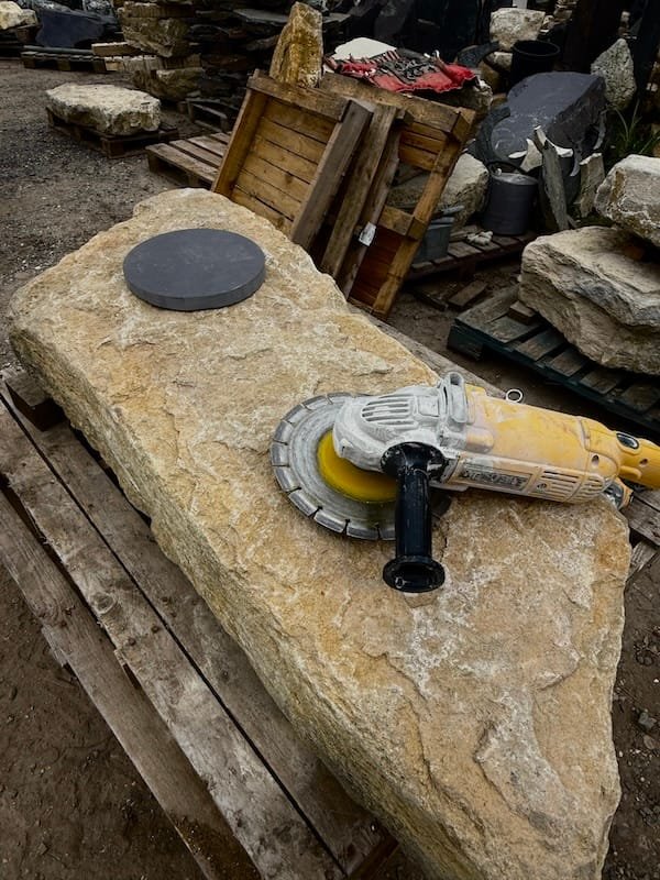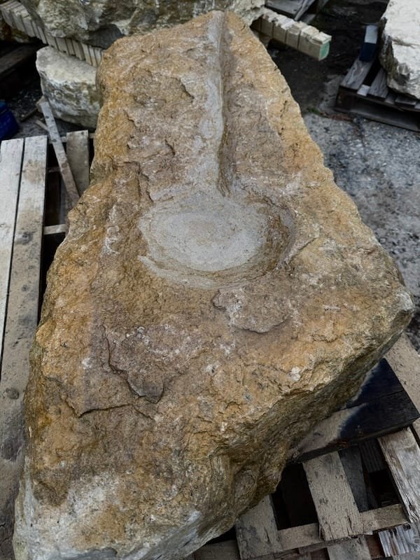 Stone Boulder Water Feature SB187 is a stunning Large sized block of Purbeck Stone. Sourced direct from the quarry in Dorset UK and modifed in our workshop. Measuring 1.4 metres long x 600mm and approximately 250mm high with light creamy and natural earthy tones. A bowl has been carefully carved on one side with an outlet on one side which feeds a rill. This rill runs the length of the stone boulder to the point where it exits and leaves the stone. This was a custom design for this exact stone. Making the most of the shape of the stone. This could be core drilled and converted into a working water feature. You would need to add a Large Reservoir Pack in the basket to complete the operation as a water feature. Includes reservoir, pump, hose, clips and a flow valve regulator. Boulders like this are ideal for creating a focal point in a border or rockery, alternaitvely can be used as a stunning feature stone. Check the photos carefully as they are of the exact boulder you will receive. Some images highlight vibrant details and contours running through the boulder. The colours of natural stone deepen and intensify when wet. Gallery images include both wet and dry. A very similar alternative feature stone to Stone Boulder Water Feature SB187 is Stone Boulder SB61. If you prefer a non drilled boulder then Stone Boulder SB52 standing stone is an alternative. For inspiration take a look at America’s Wild, presented by Trailfinders & Visit the USA which just won Gold at Hampton Court Palace Garden Festival. The beach cobbles seen in the photos are also available to purchase on the website. We recommend two handy bags to cover the lid of the 1 metre diameter large reservoir. Alternatively, use a matching crushed aggregate such as 20mm cotswold style chippings. Increase the biodiversity of your own garden by installing one of our stone boulder water features. Contact us with any questions or queries. We can send you videos of the water flowing. Lots more stone available in the yard ready to be core drilled and transformed into stunning water features. We can also supply smaller rockery pieces and stepping stones to compliment this water feature.