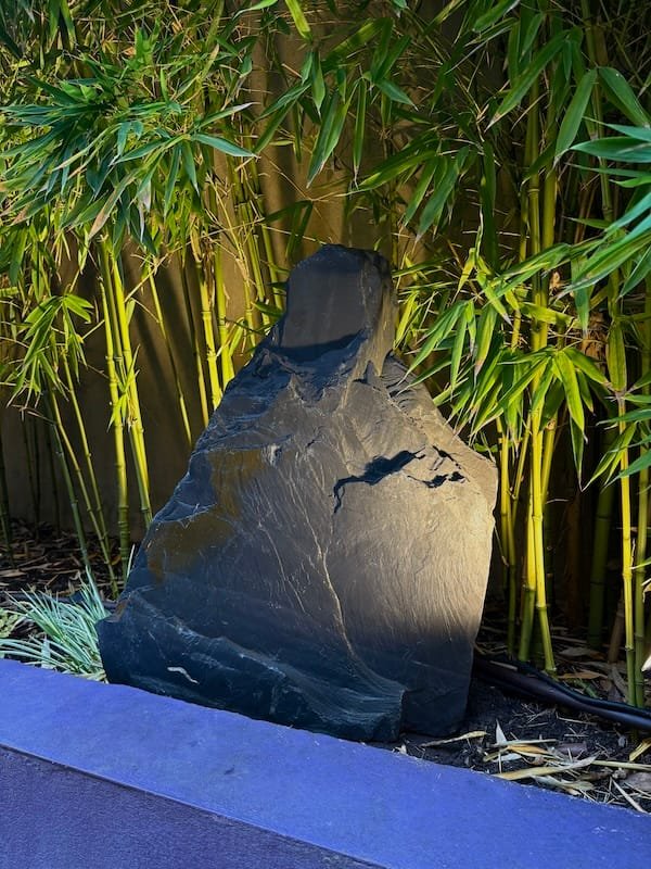 The Japanese monolith was hand-selected for its natural form and texture. Carved from ancient stone, each mark and contour tells a story written over millennia. The installation process required precision and respect — the stone was positioned according to traditional Japanese garden principles, where balance and proportion are more important than symmetry. Site access was rather tight and this slate monolith had to be carefully moved into position.